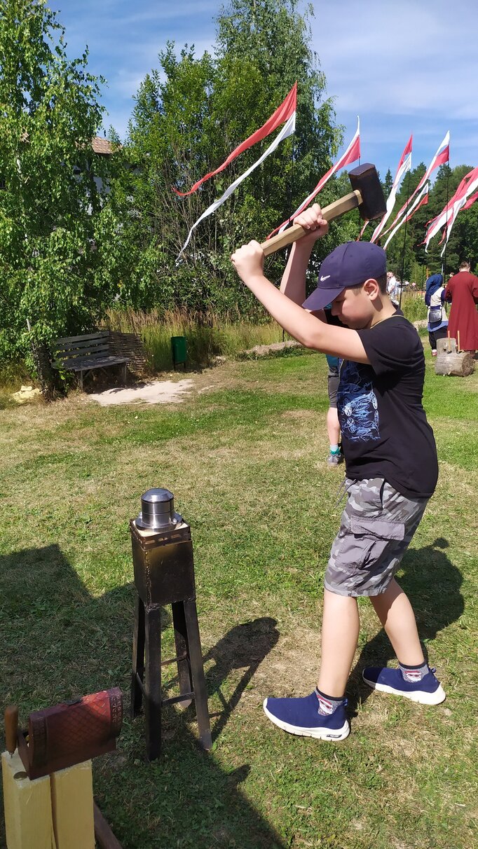 Мы устанавливаем специальный станок, на котором будет производиться чеканка монет. Все работы выполняет наш кузнец, либо после небольшого инструктажа под его присмотром это могут делать участники мероприятия.