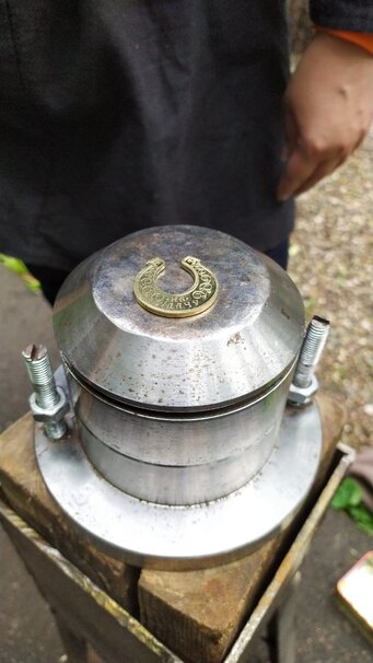 вашей монеты, изготовление двойного клише, наш выезд к вам, работа кузнеца не более 3-х часов, станок для чеканки монет, кувалда, заготовки для монет.