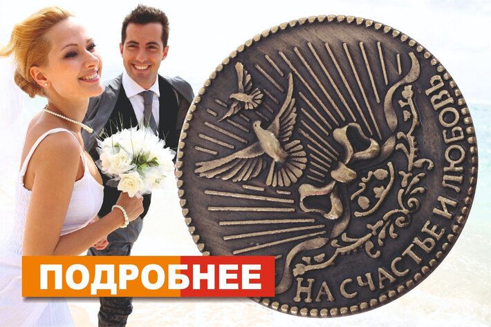 Среди свадебных примет и обычаев распространен такой, когда в бокалы молодоженов кладут монеты. После свадьбы эти монеты обязательно должны храниться под скатертью у них дома. Тогда в этой семье будет постоянный денежный достаток. А еще монеты, как и кольца, имеют круглую форму и также символизируют бесконечность в любви и благополучии.